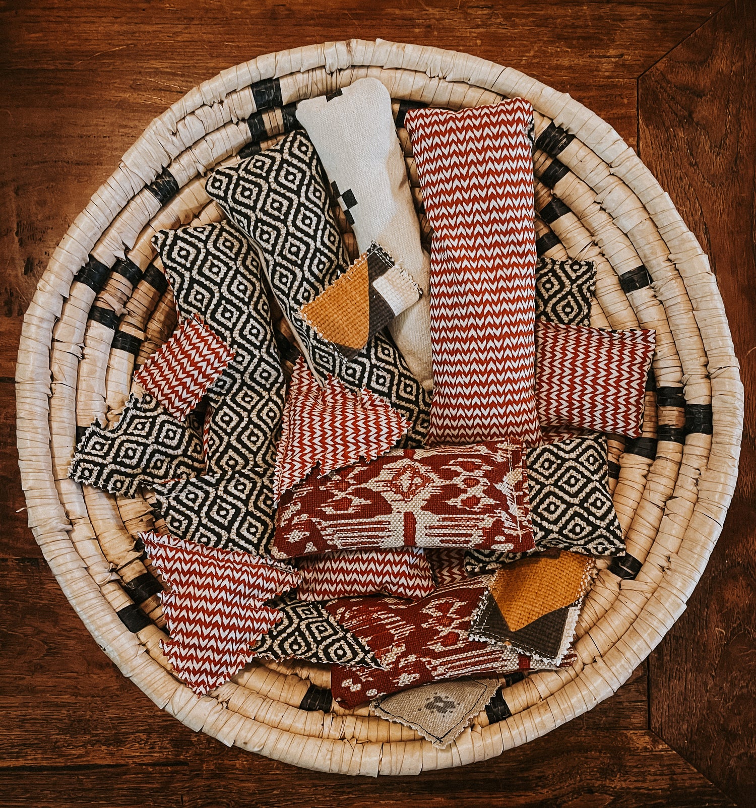 Our Sacred Pets collection is our way to honor our pets. We have created a special toys that allow us to use all of our remaining fabrics so that we cut down on our waste and lower our footprint on the planet. This helps us work towards sustainability even more. We will be periodically adding more items to this collection as we create them. We started our pet collection to honor our sweet kitty Louvel who transitioned recently as a way to honor his life.